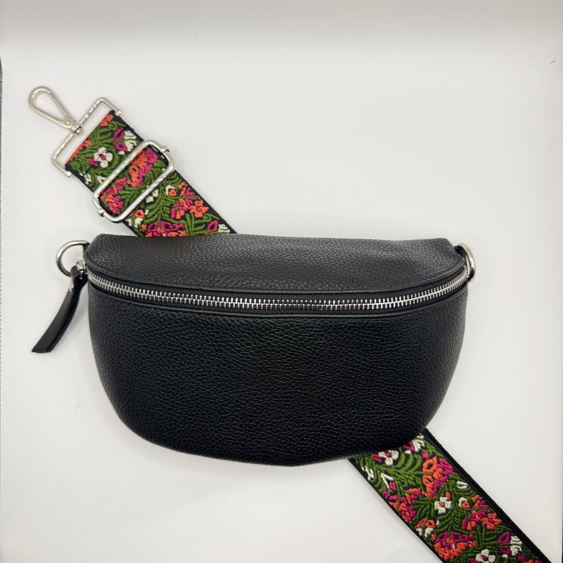 Black Bag + White Floral Strap