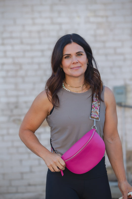 Our Sage Crossbody Bag is made of high-quality Italian leather and features a versatile design. You can wear it as both a shoulder bag and fanny pack with the included adjustable and interchangeable straps. The large zippered internal pocket and silver hardware keep your essentials secure and well organized. Complete your look by customizing your bag with additional straps in various colors, patterns and textures.